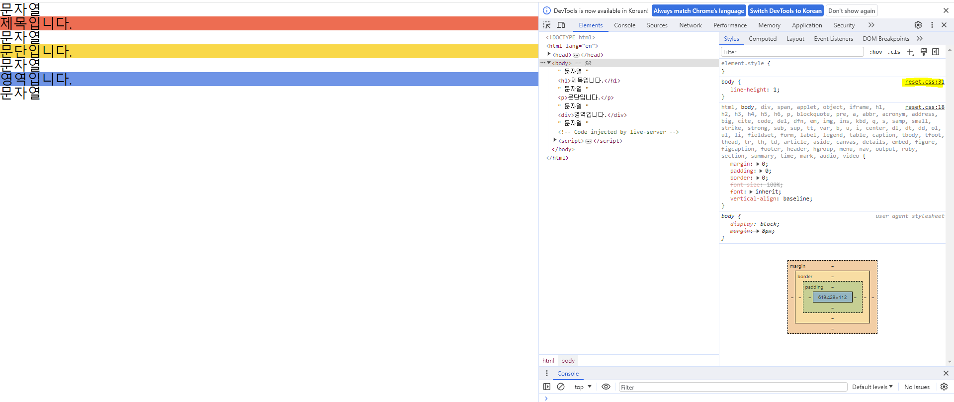> 모든 브라우저에서 동일되게 보이도록 통제한다.