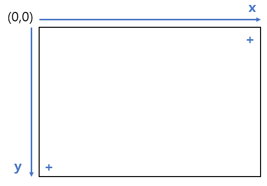 - 왼쪽 상단 끝이 0,0 위치이다.