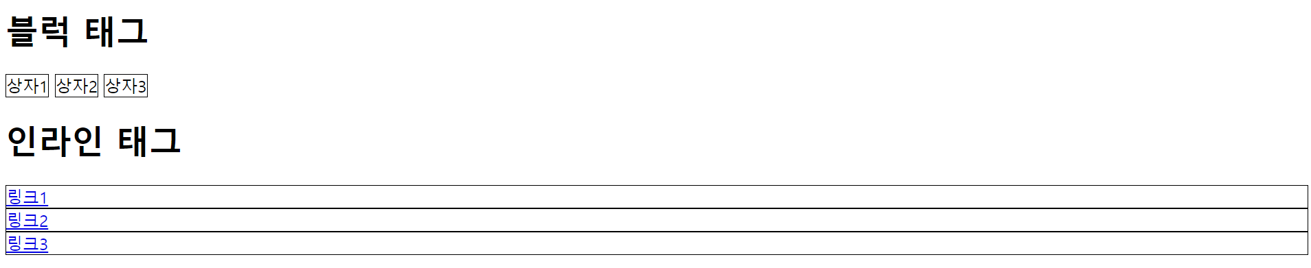 - ๋ธ๋ญ ํ๊ทธ ์ผ ๋ ๊ธฐ๋ณธ๊ฐ : block