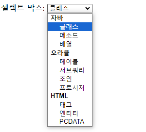 - 셀렉트 박스 = 콤보 박스(Combo), 드랍다운 리스트(DropDown List)