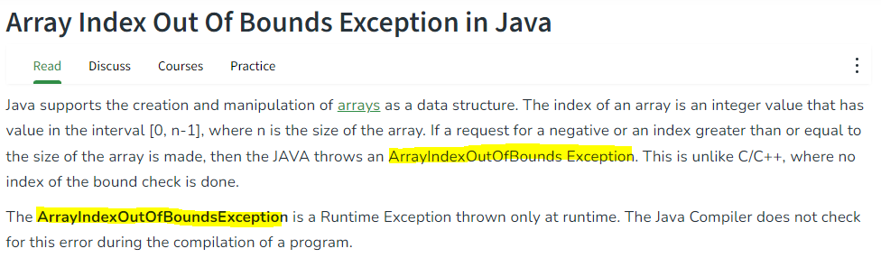 ++ 'ArrayIndexOutOfBounds Exception'์ <code> ํ๊ทธ๋ก ๊ฐ์์ ๋