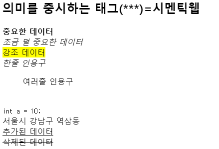 12. <mark> : ํ๊ดํ์ ๊ทธ์ ๊ฒ์ฒ๋ผ ์ถ๋ ฅํ๋ค.