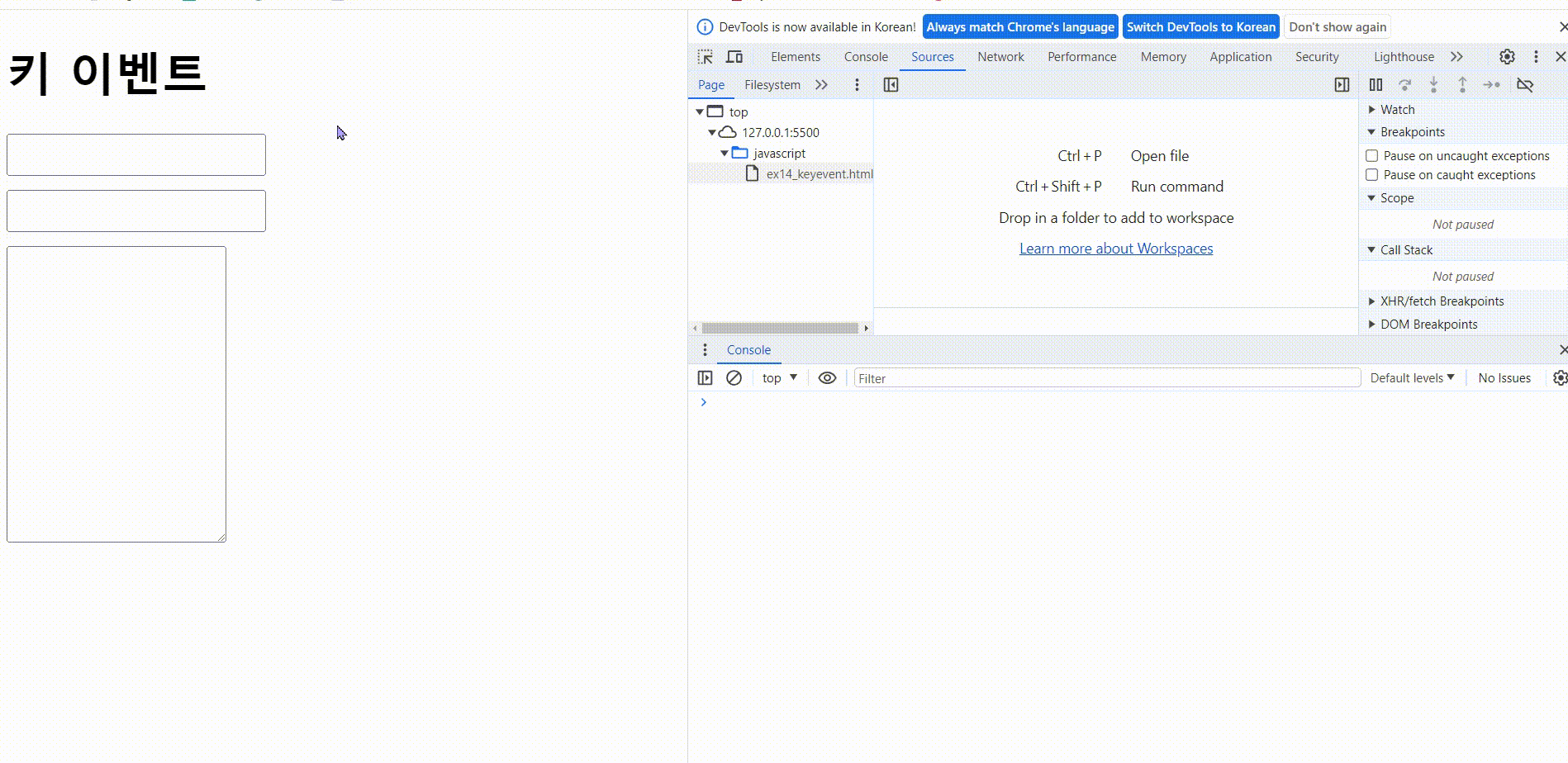 <h1>ํค ์ด๋ฒคํธ</h1>