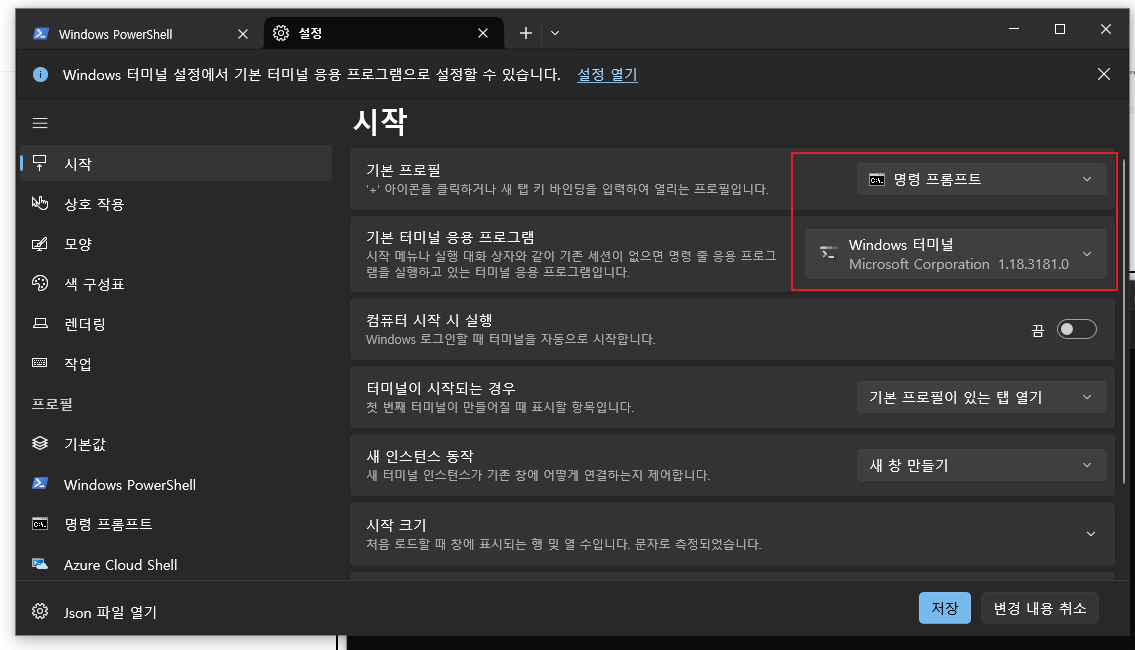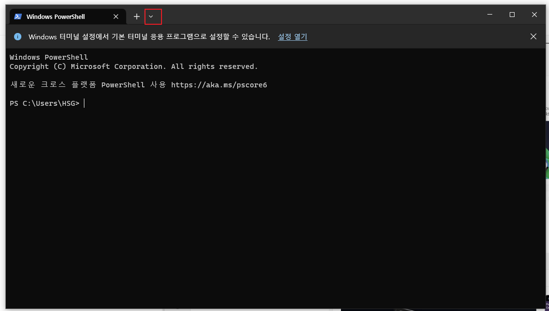 기본 터미널 응용프로그램 : Windows 터미널