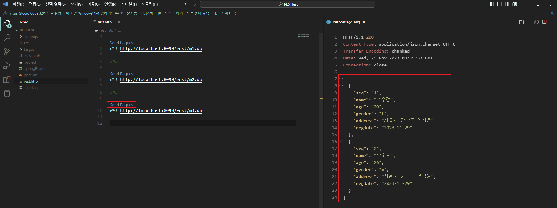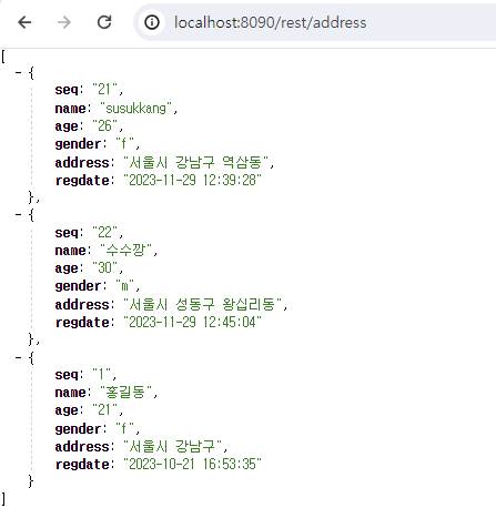 1. 요청 주소 : http://localhost:8090/rest/address