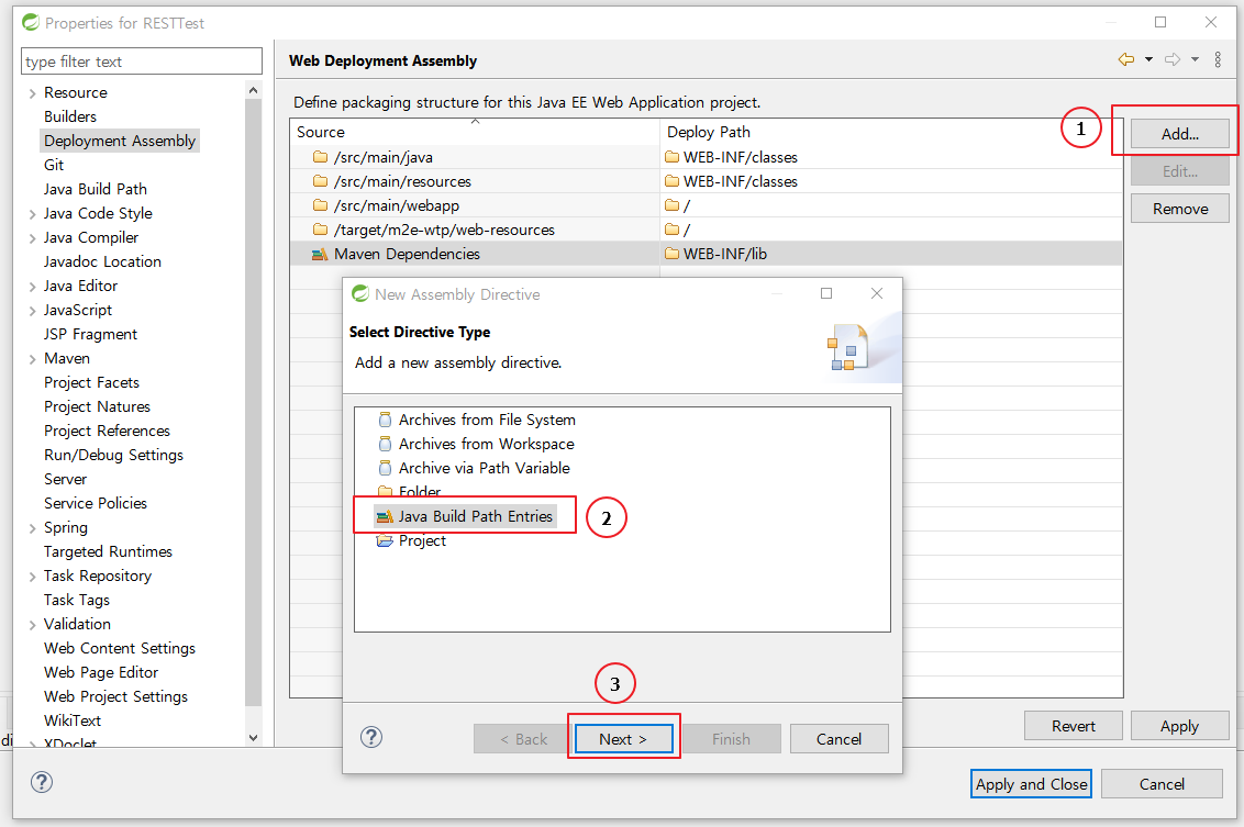 3. Maven Dependencies 선택 후 Add - Java Bulid Path Entries