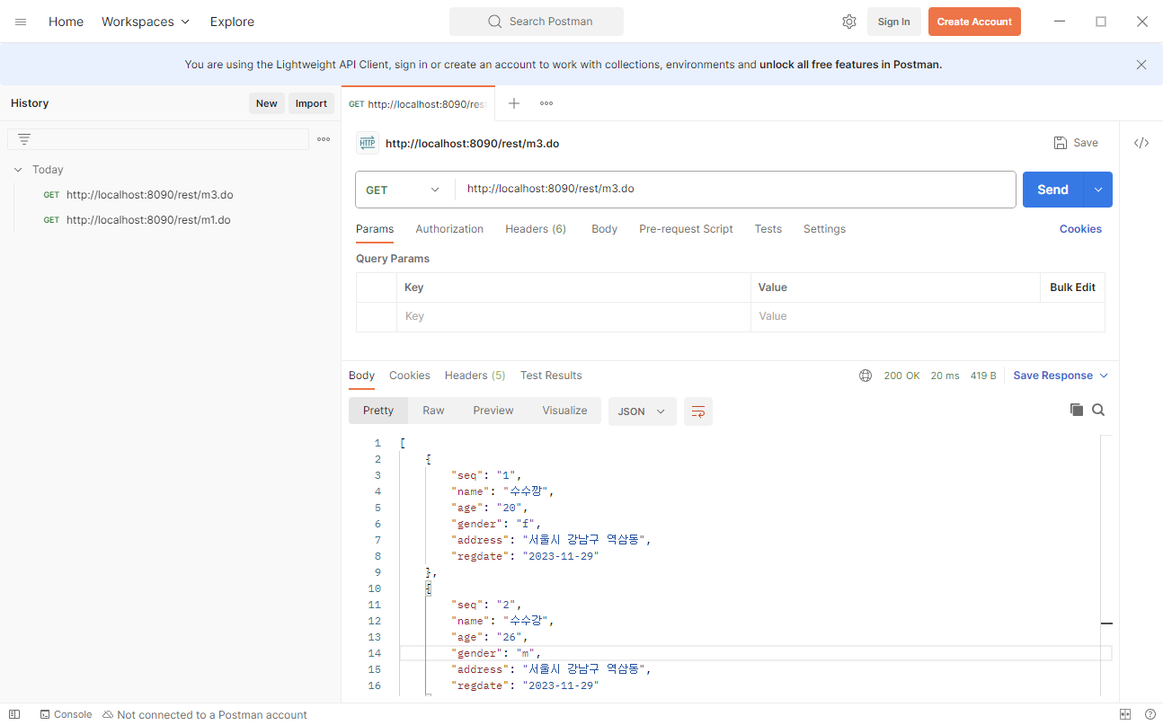 Postman 으로 JSON 전달하기
