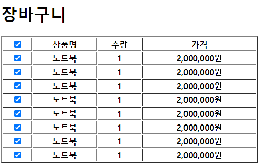 전체 체크를 할 요소들을 for으로 이벤트 객체의 결과를 반영한다.