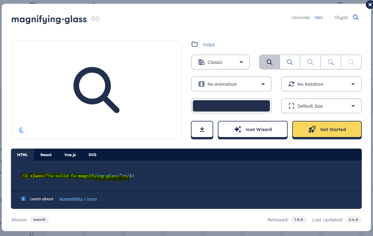 <i class="fa-solid fa-magnifying-glass" id="icon"></i>