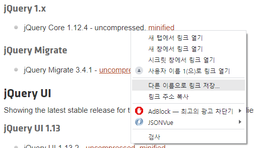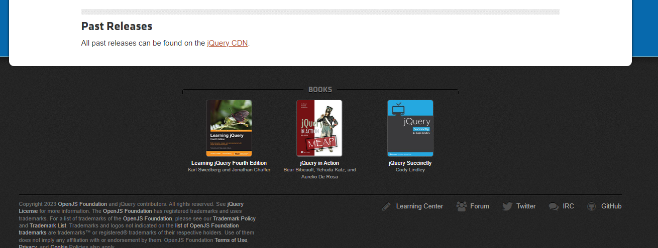 ํ์ด์ง ๋งจ ๋ฐ์ผ๋ก ๋ด๋ฆฌ๋ฉด 'Past Releases' ์ 'jQuery CDN' ํด๋ฆญ