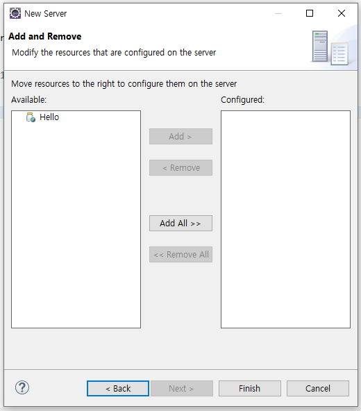 - ์๋ฒ ์ฐฝ ์๋ฌด๊ณณ์์ ์ฐํด๋ฆญ์ ํ์ฌ Add and Remove๋ฅผ ํด๋ฆญํ๋ค.